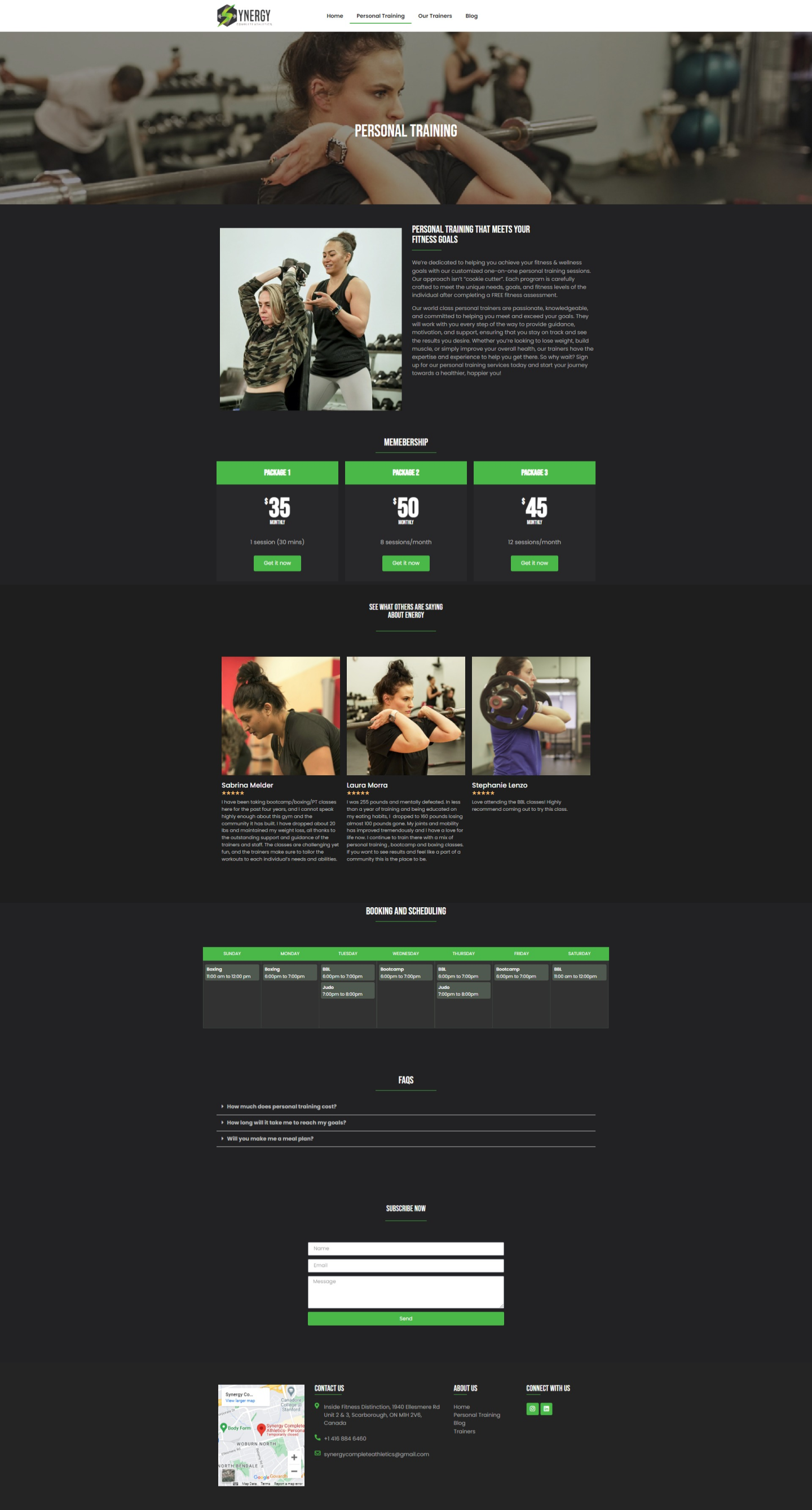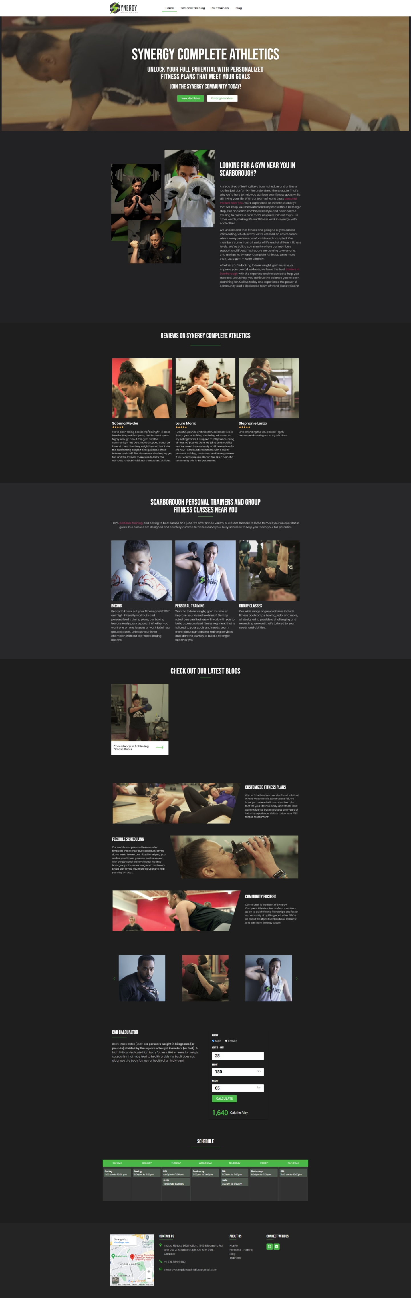 Solution: Using Elementor, we embarked on a comprehensive design and development process. We crafted an attractive website with a seamless user experience, ensuring easy navigation and engagement. Additionally, we incorporated a specialized BMR calculator and a convenient calendar system, providing added value to Synergy’s members. Throughout the process, we implemented SEO best practices to optimize the website’s visibility and search engine rankings. The end result is a dynamic and optimized website that effectively represents Synergy and caters to the needs of its users in Toronto, Canada.